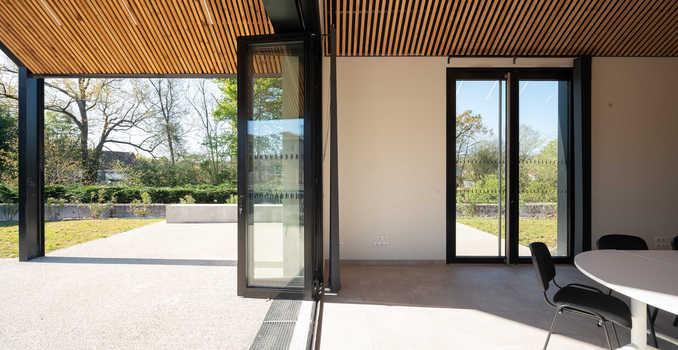 L’architecture contemporaine s’exprime dans le choix des matériaux, la construction même, le rythme des baies et des parties pleines en façades.