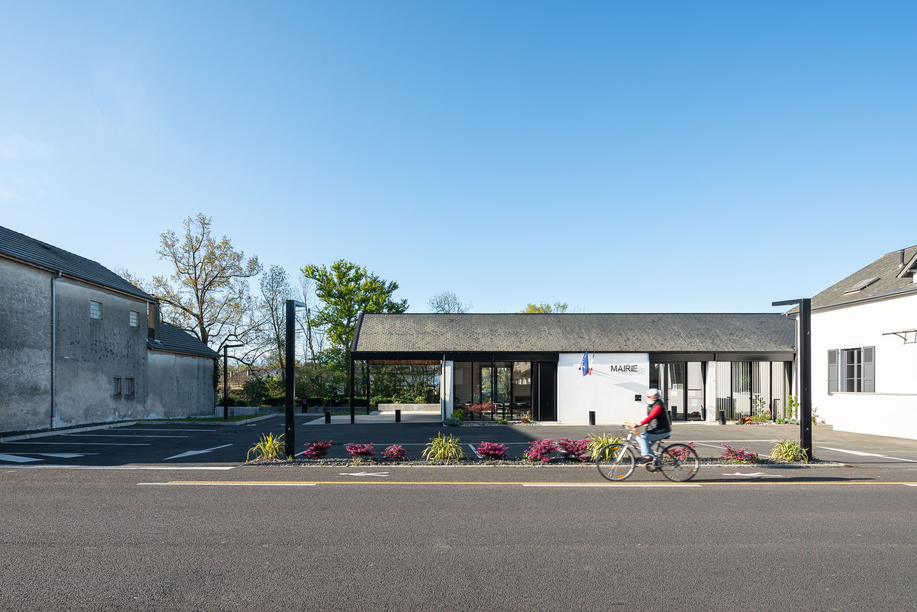 La mairie est ouverte sur l’extérieur, accueillante. Les locaux créés, largement ouverts sur l’extérieur, disposent de protections solaires ou de claustras.
