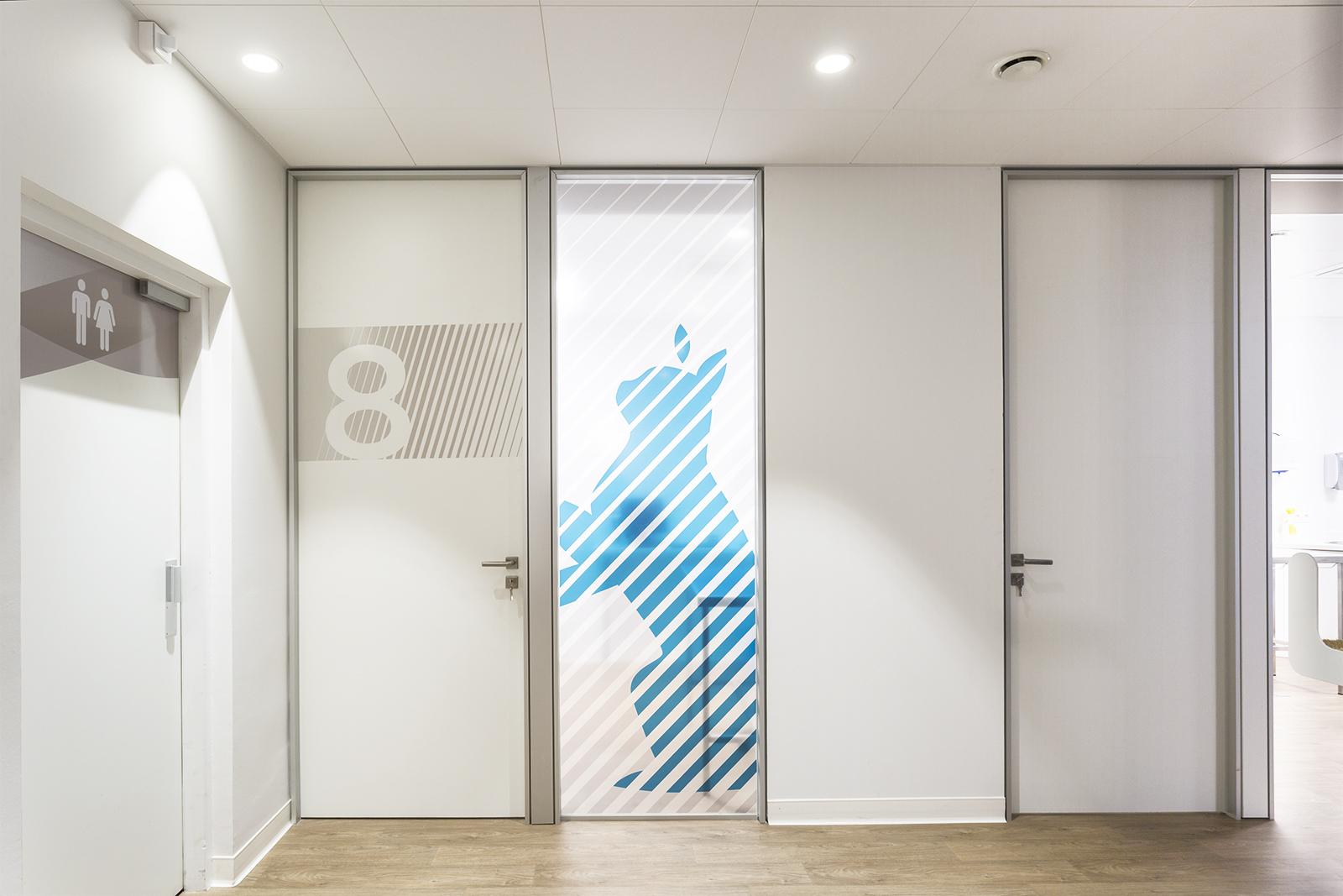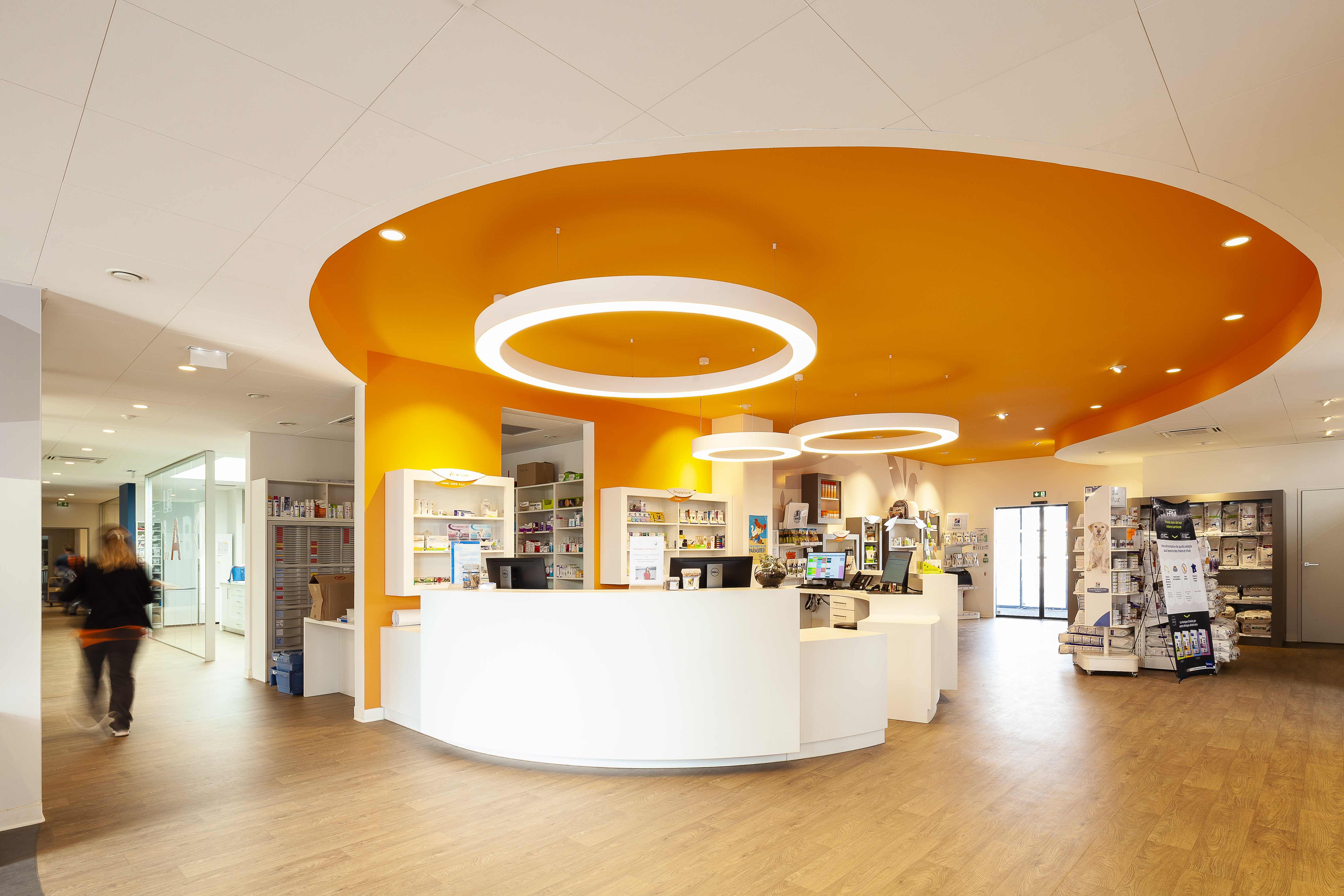 La clinique vétérinaire dispose de douze salles de consultation, une pension pour chats, un pôle chirurgie avec trois salles d’opération, un laboratoire, un espace de réadaptation fonctionnelle.