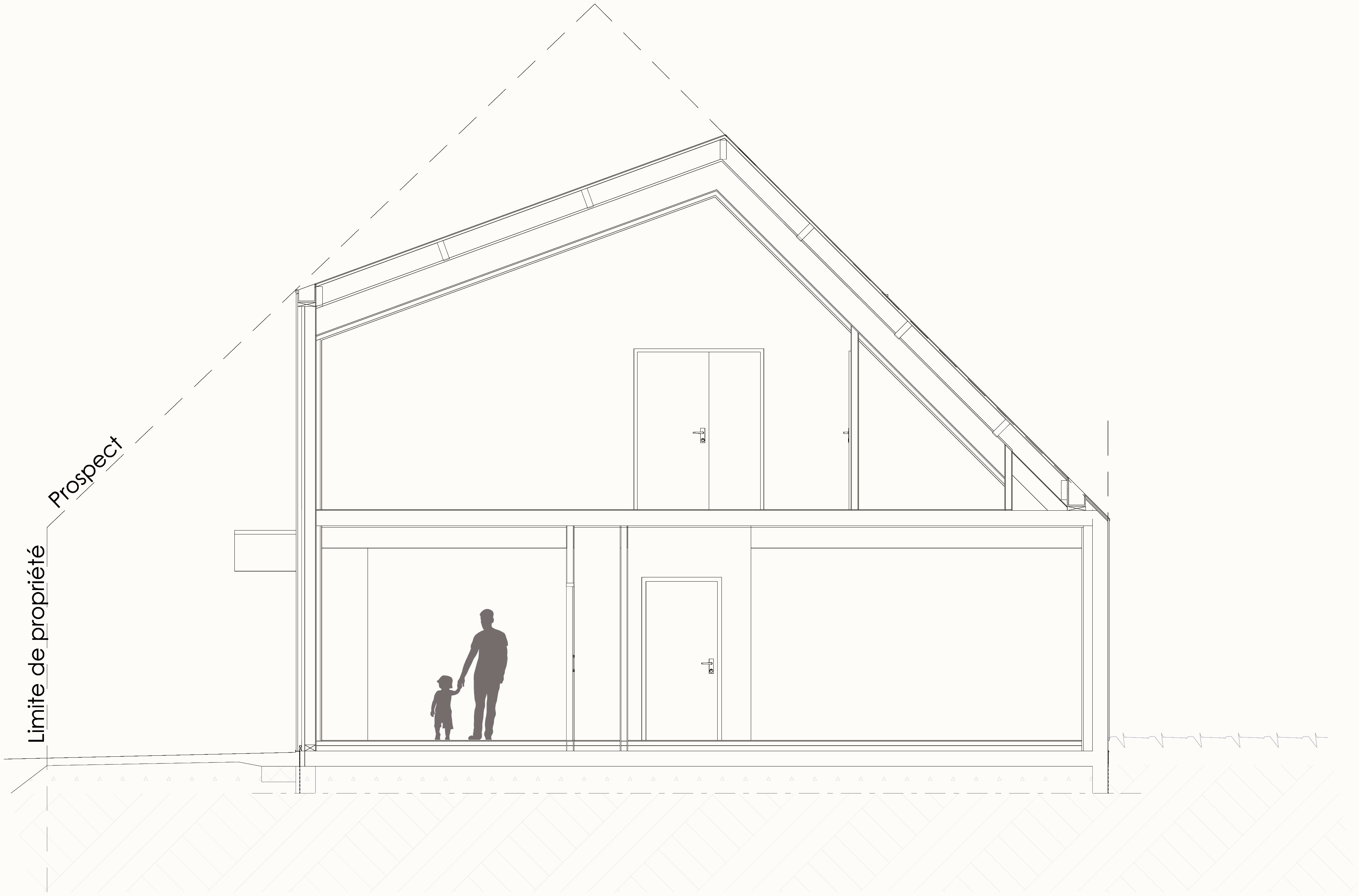 Construit en limite de propriété sur une parcelle exigüe, la volumétrie du bâtiment est le résultat de l’application des règles d’urbanisme et de prospect et lui donne un caractère original. Un patio intérieur apporte de la lumière et de l’intimité aux locaux.